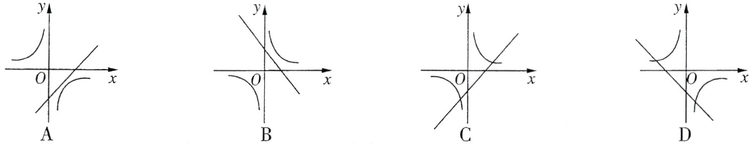 6. 一次函数$y = ax + b$与反比例函数$y = \frac{a - b}{x}$,其中$ab < 0$,$a$,$b$为常数,它们在同一坐标系中的图象可以是( )