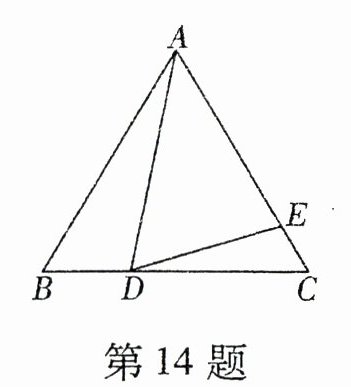 14. 如图所示,在边长为9的正三角形$ABC$中,$BD = 3$,$\angle ADE = 60^{\circ}$,则$AE$的长为_______.