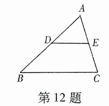 12. 如图所示,在$\triangle ABC$中,点$D$,点$E$分别是边$AB$,$AC$的中点,则$\triangle ADE$与$\triangle ABC$的周长之比等于_______.