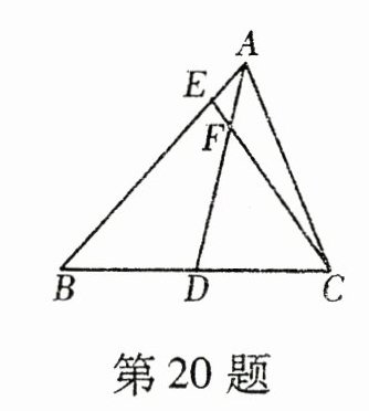 20. 如图,在$\triangle ABC$中,$AD$是$BC$边上的中线,$F$是$AD$上一点,射线$CF$交$AB$于点$E$,且$\frac{AE}{BE}=\frac{1}{6}$,则$\frac{AF}{FD}=$_______.