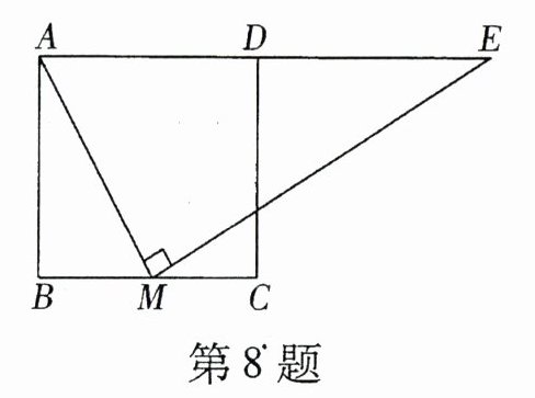 8. 如图,正方形$ABCD$中,$M$为$BC$上一点,$ME\perp AM$,$ME$交$AD$的延长线于点$E$. 若$AB=12$,$BM=5$,则$DE$的长为( )