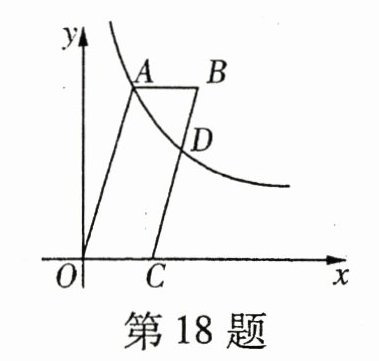 18. 如图,四边形$OABC$是平行四边形,点$C$在$x$轴上,反比例函数$y=\frac{k}{x}(x>0)$的图象经过点$A(5,12)$,且与边$BC$交于点$D$. 若$AB = BD$,则点$D$的坐标为_______.