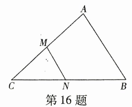 16. 如图,在$\triangle ABC$中,$M$,$N$分别为$AC$,$BC$的中点. 若$S_{\triangle CMN}=1$,则$S_{四边形ABNM}=$_______.