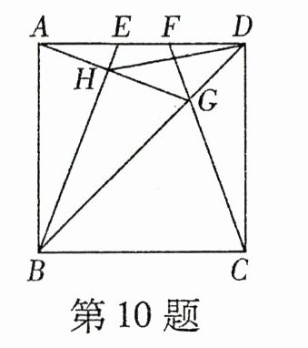 10. 如图,在边长为4的正方形ABCD中,E,F是AD边上的两个动点,且AE = FD,连接BE,CF,BD,CF与BD交于点G,连接AG交BE于点H,连接DH,下列结论正确的个数是( )