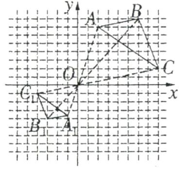以O为位似中心,在第三象限内作出△$A_{1}B_{1}C_{1}$,使△$A_{1}B_{1}C_{1}$与△ABC的位似比为1:2.