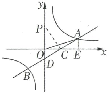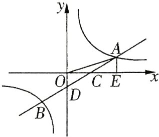 26. (10分)如图,一次函数$y = ax + b$的图象与反比例函数$y = \frac{k}{x}$的图象交于A,B两点,与x轴交于点C,与y轴交于点D,AE垂直x轴于E点,已知$OA = \sqrt{10}$,$OE = 3AE$,点B的坐标为$(m,-2)$.