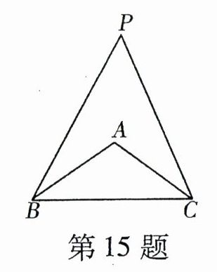 15. 如图所示,在△ABC中,AB = AC = 5,BC = 8. 若$\angle BPC = \frac{1}{2}\angle BAC$,则\tan\angle BPC = _______.