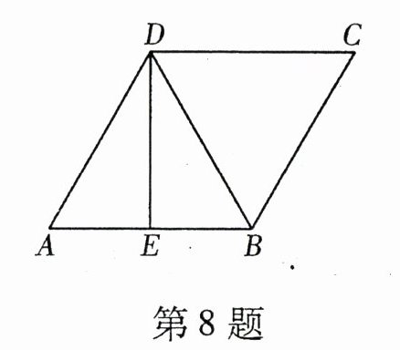 8. 如图所示,在菱形ABCD中,DE⊥AB,$\cos A = \frac{3}{5}$,BE = 2,则$\tan\angle DBE$的值是( )