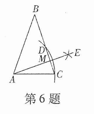 6. 如图,在$\triangle ABC$中,$AB = BC$,以点$A$为圆心,$AC$长为半径画弧,交$BC$于点$C$和点$D$,再分别以点$C$,$D$为圆心,大于$\frac{1}{2}CD$长为半径画弧,两弧相交于点$E$,作射线$AE$交$BC$于点$M$. 若$CM = 1$,$BD = 3$,则$\sin B = $( )