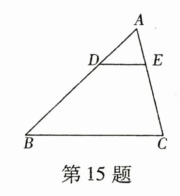 15. 如图,在$\triangle ABC$中,$DE// BC$,分别交$AB$,$AC$于点$D$,$E$. 若$AD = 1$,$DB = 2$,则$\triangle AED$的面积与$\triangle ABC$的面积的比是________.