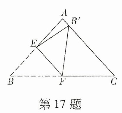 17. 将三角形纸片($\triangle ABC$)按如图所示的方式折叠,使点$B$落在边$AC$上,记点$B'$,折痕为$EF$. 已知$AB = AC = 3$,$BC = 4$,如果以点$B'$,$F$,$C$为顶点的三角形与$\triangle ABC$相似,那么$BF = $________.