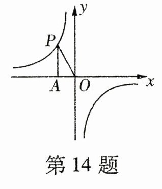 14. 如图,点$P$是第二象限内的一点,且在反比例函数$y = \frac{k}{x}$的图象上,$PA\perp x$轴于点$A$,$\triangle PAO$的面积为3,则$k$的值为________.