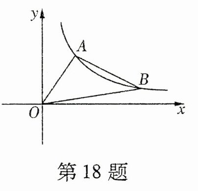 18. 如图,反比例函数$y = \frac{6}{x}$在第一象限的图象上有两点$A$,$B$,它们的横坐标分别是2,6,则$\triangle AOB$的面积是________.