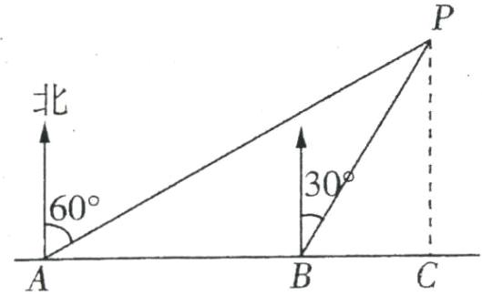 解:过点$P$作$PC\perp AB$交$AB$的延长线于点$C$,