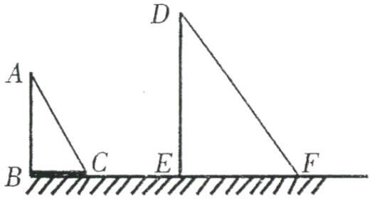 23. (8分)如图所示,AB和DE是直立在地面上的两根立柱.AB = 5m,某一时刻AB在阳光下的投影BC = 3m.
