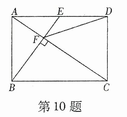 10. 如图,在矩形$ABCD$中,$E$是$AD$边的中点,$BE\perp AC$,垂足为点$F$,连接$DF$,分析下列四个结论: