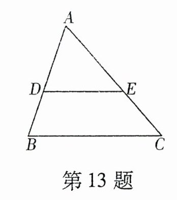 13. 如图,在$\triangle ABC$中,$DE// BC$,分别交$AB$,$AC$于点$D$,$E$. 若$AD = 3$,$DB = 2$,$BC = 6$,则$DE$的长为_______.
