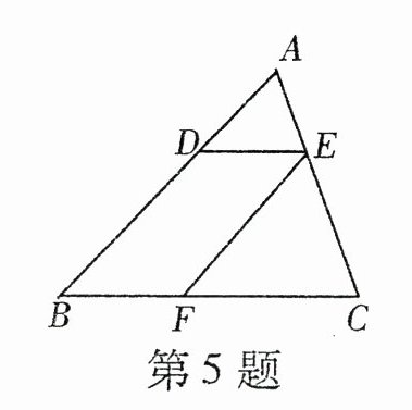 5. 如图所示,已知在$\triangle ABC$中,点$D$,$E$,$F$分别是边$AB$,$AC$,$BC$上的点,$DE// BC$,$EF// AB$,且$AD:DB = 3:5$,那么$CF:CB$等于( )