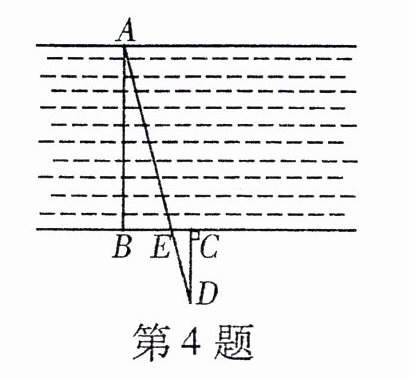 4. 如图所示,为估算某河的宽度,在河对岸边选定一个目标点$A$,在近岸取点$B$,$C$,$D$,使得$AB\perp BC$,$CD\perp BC$,点$E$在$BC$上,并且点$A$,$E$,$D$在同一条直线上,若测得$BE = 20m$,$EC = 10m$,$CD = 20m$,则河的宽度$AB$等于( )