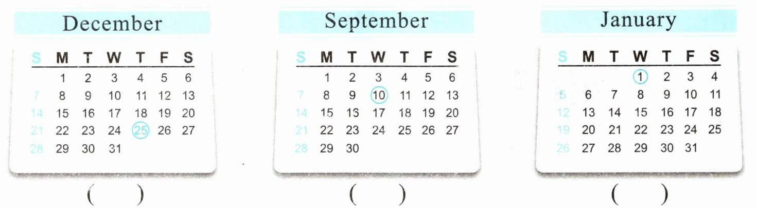 ( ) 2. A. January 1st. B. Autumn. C. August.