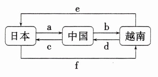 解析:第3题,日本经济发达,劳动力成本较高,应为工业制成品流入地。越南经济落后,虽然劳动力资源比较丰富,但是工业基础薄弱,工业制成品产量较少,出口量较少,d、e应为矿产、农产品等初级产品。中国劳动力资源丰富,工业基础雄厚,工业制成品出口量大,在日本、中国、越南三个国家中,中国应为工业制成品供应方,故b、c表示工业制成品的流动方向,B正确。第4题,f由日本指向越南,应为日本的优势要素,同时又是越南急需的要素。日本属于发达国家,在技术、资源、人才等方面优势明显,A正确。