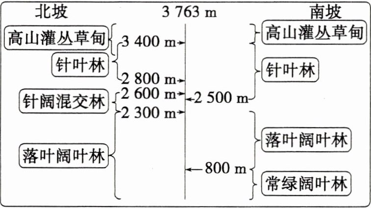 (1)赞同。南坡800m等高线以下是常绿阔叶林,说明是亚热带(常绿阔叶林是亚热带的代表植被群落);北坡800m以下(常绿阔叶林消失)为落叶阔叶林,说明是暖温带(落叶阔叶林是暖温带的代表植被群落)。