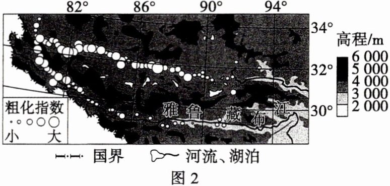 (1)指出图2所示区域风蚀粗化指数的空间分布特征,并解释其原因。