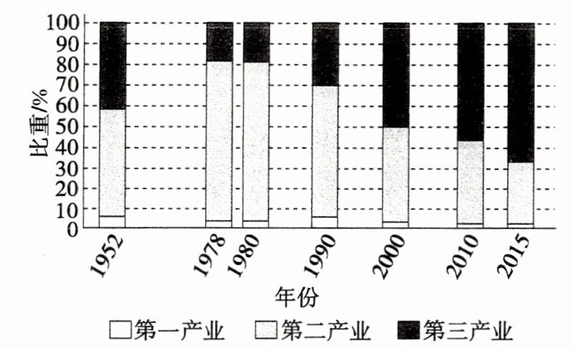 2. 关于1952—2015年上海市的产业结构变化特点,叙述不正确的是( )