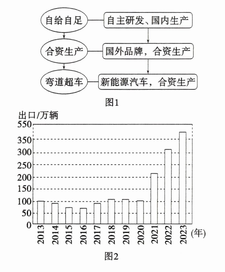 (1)分析2021年以来,我国汽车出口量剧增的原因。