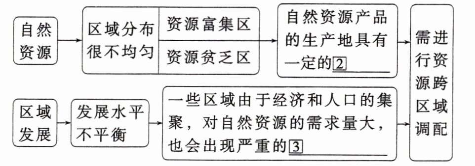 ①生产和消费 ②集中性 ③资源短缺 ④供大于需