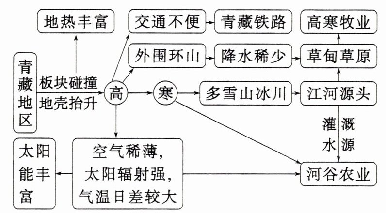 (2)说出青藏地区这一总体特征是通过哪些自然要素体现出来的。【综合性】