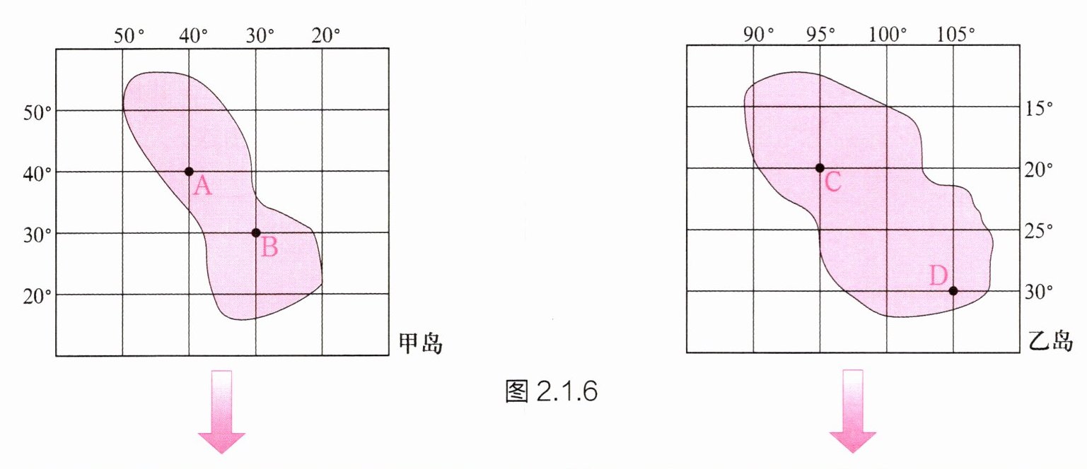(3)甲岛A点位于乙岛C点的____________方向。(4)甲岛的面积比乙岛的面积____________(大或小)。