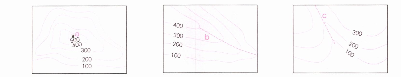 a.______:等高线闭合,数值从四周向中间逐渐升高。