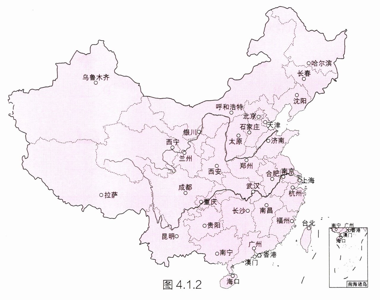 表4.1.2为我国部分城市某日的天气情况,在图4.1.2中合适的位置绘制对应的天气符号。
