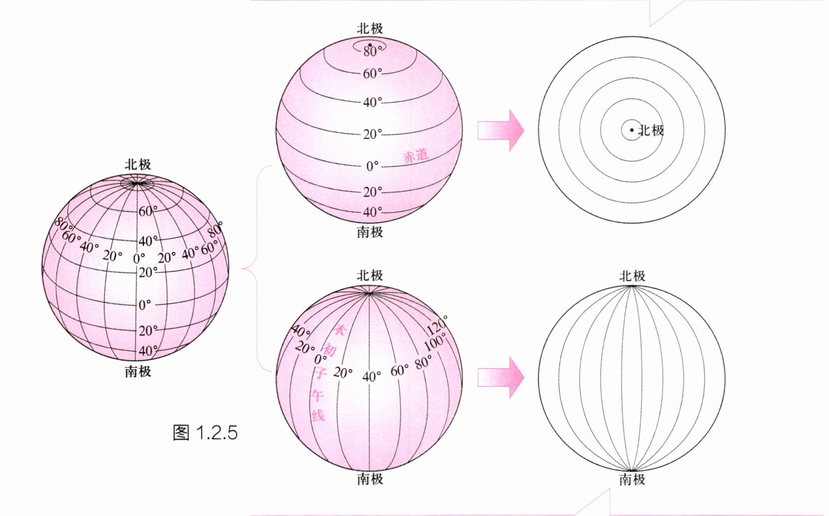 读图1.2.5,按要求描绘经纬线,归纳经线和纬线的特点。
