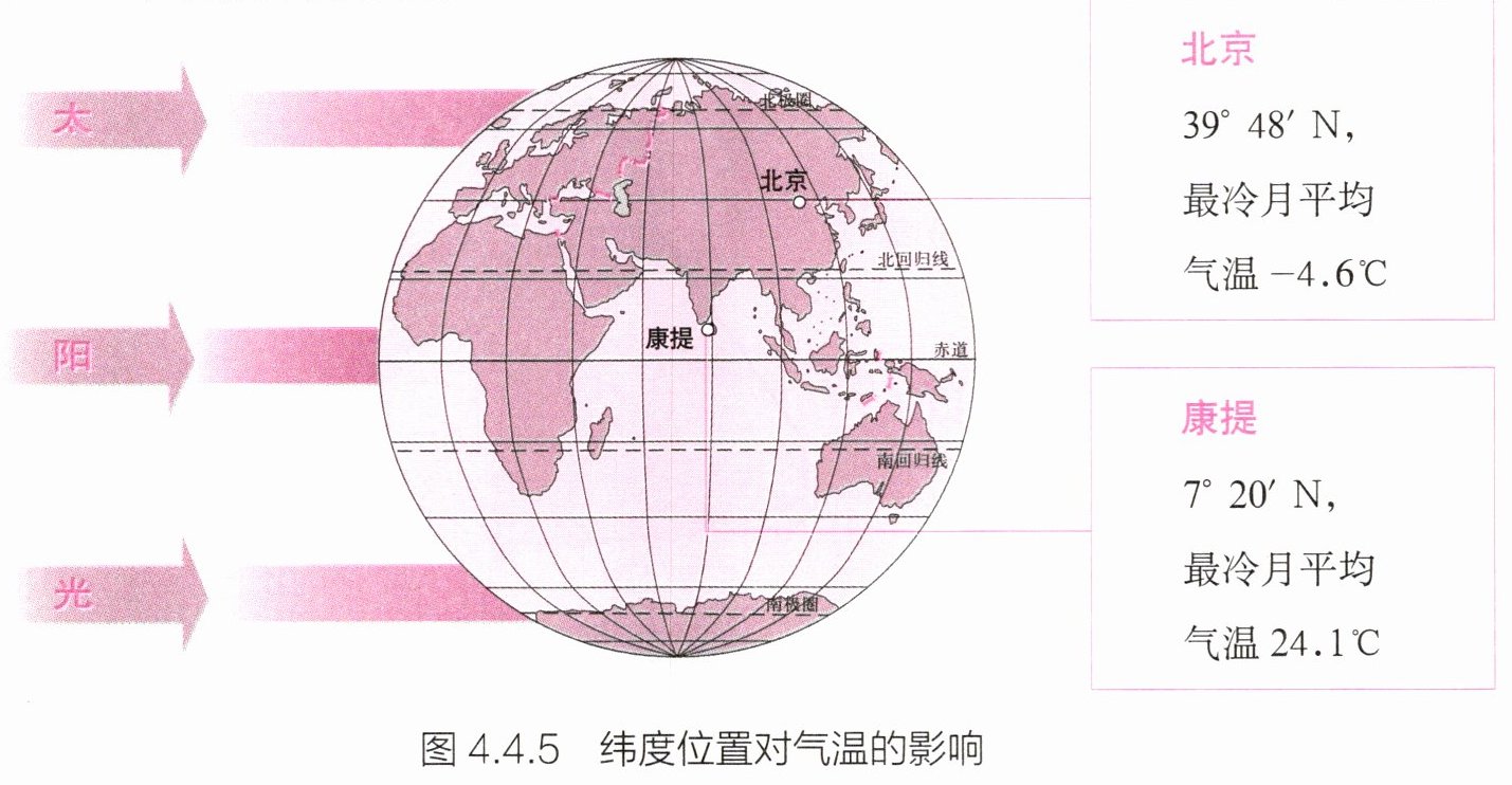 (1)读图4.4.6,在表4.4.2中分别写出图中4个城市1月、7月的平均气温值。