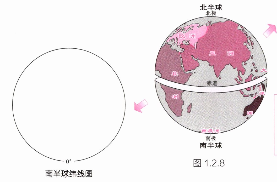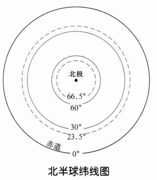 (1) 参照“北半球纬线图”,绘出“南半球纬线图”。南北半球的分界线是______。
