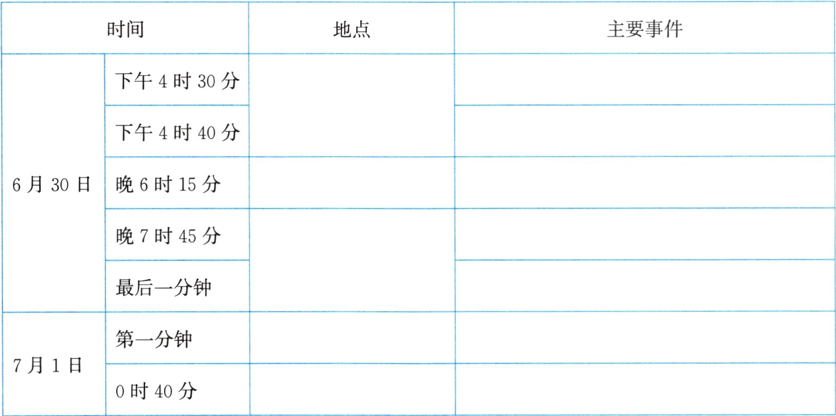 1. 梳理《别了,“不列颠尼亚”》一文中的新闻事实,填写下表。