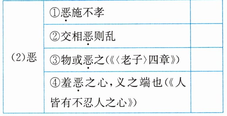 (2)①何,怎么 ②憎恶,仇恨 ③厌恶 ④羞耻
