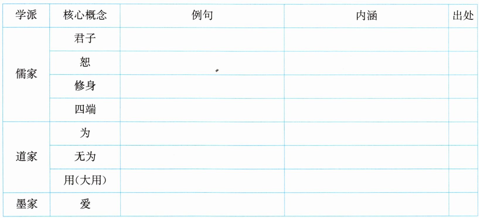 一 梳理本单元诸子作品核心概念,理解其内涵