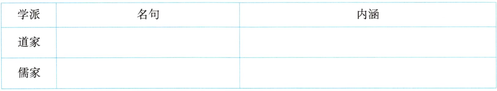 2.儒道两家的经典论述中,都反复出现“道”的概念。筛选两家论述“道”这一核心概念的典型句子,辨析其内涵的不同。