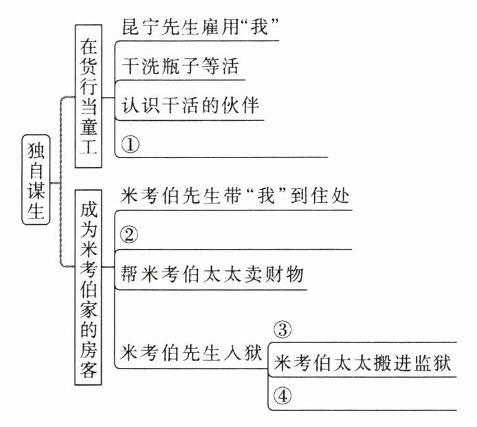请根据小说内容,从“我”的角度梳理情节,填出导图中的空缺部分。
