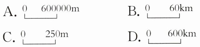 (2)把数值比例尺1:600000改写成线段比例尺是( )。