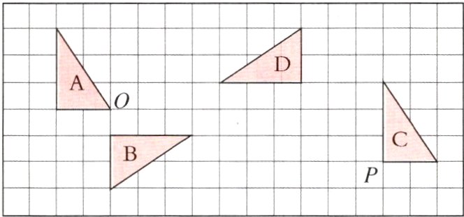 (2) 图形D是图形C绕P点( )时针旋转( )°后,又向( )平移( )格,再向( )平移( )格得到的。