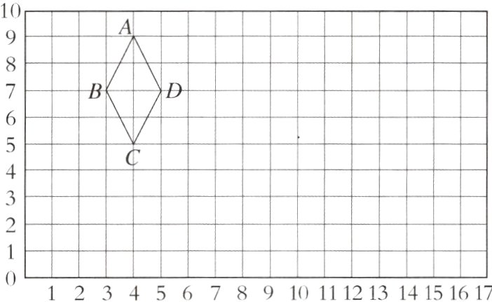 (2) 将这个图形先向右平移9格,再向下平移3格,画出来,并标出A'、B'、C'、D'的位置。
