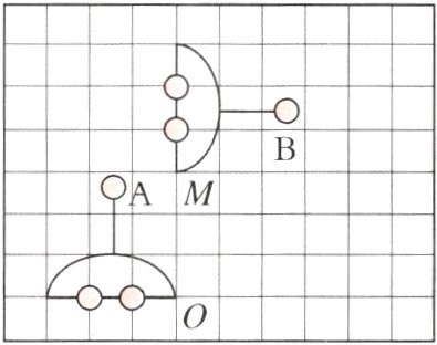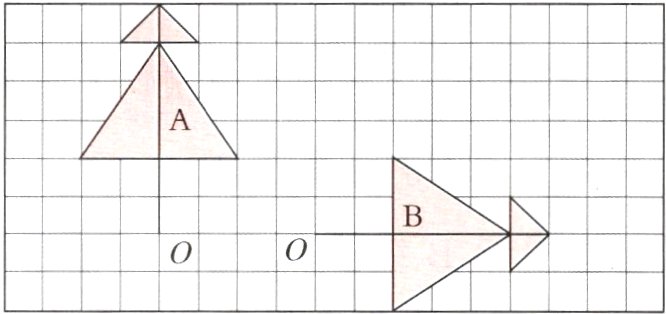 2. 如图,图形A先绕O点( )时针旋转( )°,再向( )平移( )格得到图形B。