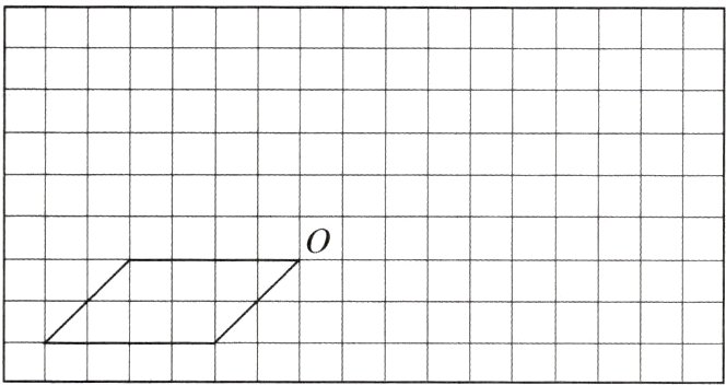 4. 先画出平行四边形绕点顺时针旋转90°后的图形,再将旋转后的图形向右平移6格。