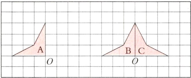 (2) 根据旋转的特征,图形B绕点O顺时针旋转90°,即可得到图形C。