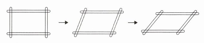 (2) 四根木条制作一个长方形框架,双手将它的两个对角慢慢向两边拉动,在这个变化过程中,平行四边形的面积和高( )变化。