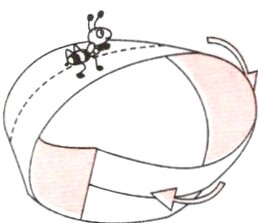 (2)如图,沿莫比乌斯带的二分之一线剪下去,剪出来的结果会是( )。